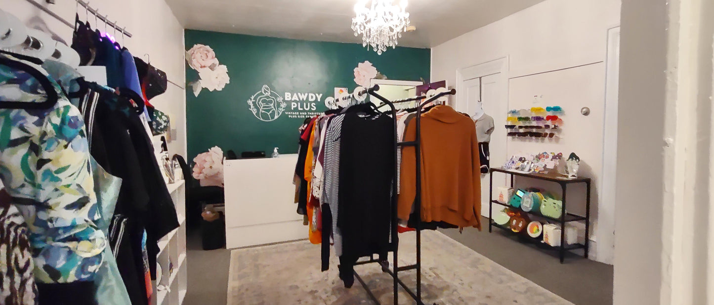 BawdyPlus is a clothing consignment and vintage boutique with an emphasis on plus sizes. We sell fashionable, gently worn clothing and accessories for a wide variety of sizes. We also have a curated selection of accessories and gifts, many of which were created by independent artists and businesses.